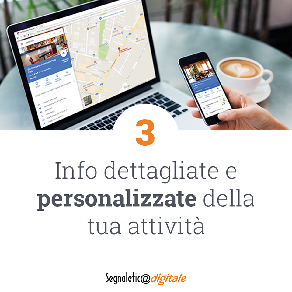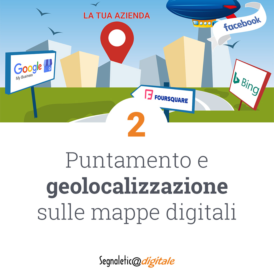 • Geolocalizzazione della tua scheda sulle mappe digitali più usate dagli utenti sul web per aiutare potenziali clienti a raggiungerti in modo rapido e agevole.